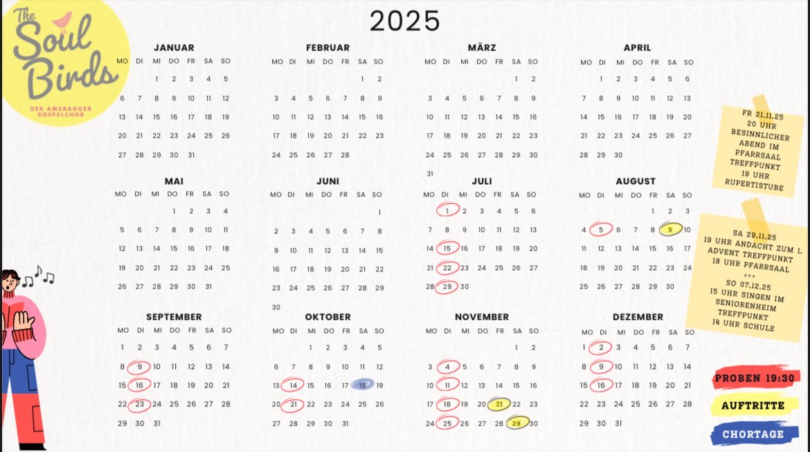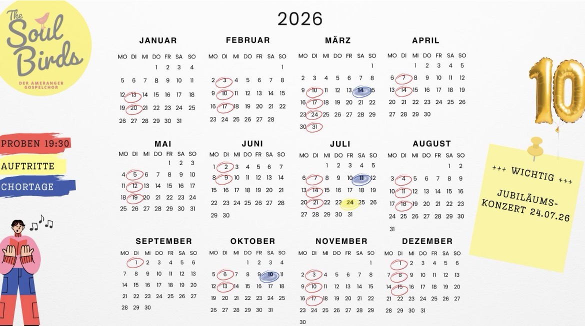 Wer sich für den Chor interessiert und gerne einmal vorbeischauen möchte, ist jederzeit herzlich willkommen. Am besten kurz vorher kurz unter info@soulbirds.de melden.